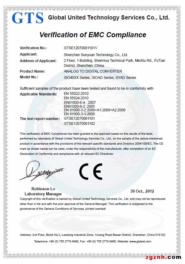 GTS CE產(chǎn)品質(zhì)量認(rèn)證包括深圳順源公司自主科研:SY AD 系列 ISO 40XX系列 ISO AD系列。