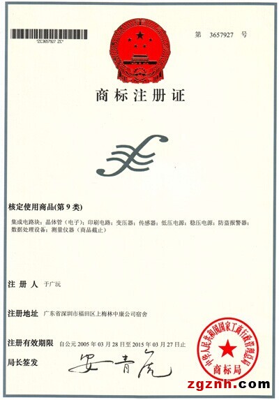 深圳順源科技注冊商標證書