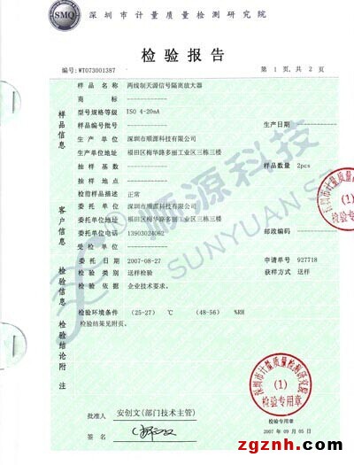 隔離放大器質(zhì)量檢測證書
