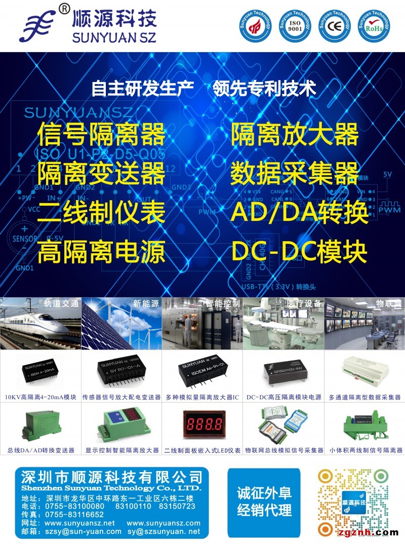 順源科技以"誠信、敬業(yè)、團(tuán)結(jié)、創(chuàng)新"為工作方針。以"客戶的成功,我們的價(jià)值"為宗旨的服務(wù)理念,勇于追求高質(zhì)量、高可靠性的品質(zhì)目標(biāo)。目前已規(guī)模生產(chǎn)銷售的產(chǎn)品有:DC-DC模塊電源系列(包括定壓、寬壓輸入、輸出帶短路保護(hù)及高壓輸出模塊等)、 模擬信號隔離放大器系列(包括磁電、光電隔離技術(shù)的配電器、安全隔離柵等)、模擬量隔離變送器系列(包括AC信號、溫度、壓力、頻率、位移、真有效值信號等IC)、多路數(shù)據(jù)采集器系列(包括模數(shù)A/D轉(zhuǎn)換、數(shù)模D/A轉(zhuǎn)換、以太網(wǎng)物聯(lián)網(wǎng)及現(xiàn)場總線數(shù)據(jù)采集等)高技術(shù)、高品質(zhì)產(chǎn)品。 產(chǎn)品規(guī)格達(dá)2000多種,國內(nèi)外客戶6000多家。