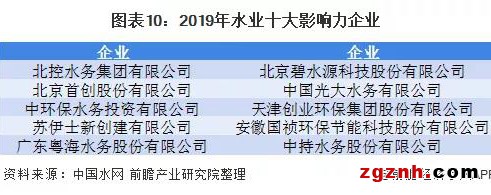 根據(jù)企業(yè)的業(yè)績(jī)以及他們?cè)谫Y本市場(chǎng)、穩(wěn)健運(yùn)營(yíng)、企業(yè)社責(zé)任等方面的綜合評(píng)價(jià),中國(guó)水網(wǎng)評(píng)選出2019水業(yè)十大影響力企業(yè)為:北控水務(wù)集團(tuán)有限公司、北京首創(chuàng)股份有限公司、中環(huán)保水務(wù)投資有限公司、蘇伊士新創(chuàng)建有限公司、廣東粵海水務(wù)股份有限公司、北京碧水源科技股份有限公司、中國(guó)光大水務(wù)有限公司、天津創(chuàng)業(yè)環(huán)保集團(tuán)股份有限公司、安徽國(guó)禎環(huán)保節(jié)能科技股份有限公司、中持水務(wù)股份有限公司。