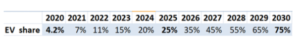 新能源汽車作為新時代的寵兒,是全世界眾多國家戰(zhàn)略發(fā)展的重點(diǎn)。在2020年,新能源汽車在市場中的占比只有4.2%;預(yù)計(jì)到2030年,全世界出售的汽車中新能源汽車占比會高達(dá)75%!