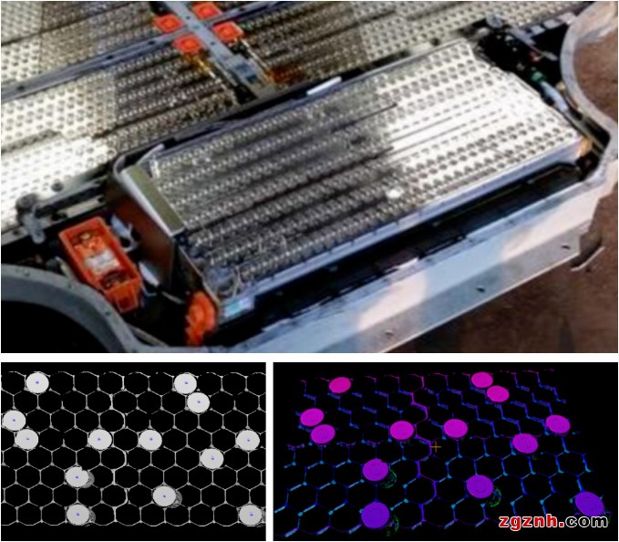 2. 圓柱電芯組成動力電池模組后,需要對電池表面平整度進(jìn)行檢測,確保電芯安裝到位;同時也需要檢測每個位置的電芯有無和安裝正反。