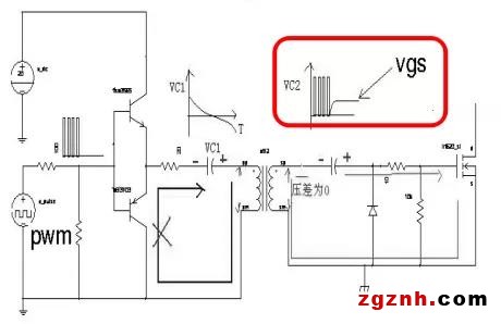 圖5 雙隔直磁隔離驅(qū)動電路誤導(dǎo)通波形示意圖