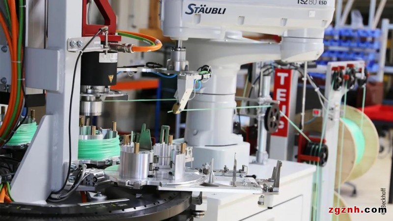 因此,機(jī)器設(shè)計(jì)的目的是最大限度地提升緊湊性和靈活性。為此需要將大量加工工位整合到整個(gè)系統(tǒng)中,這實(shí)際上就是一個(gè)模塊化系統(tǒng)。Markus Resch 描述道:“我們想要設(shè)計(jì)出這樣一條裝配線(xiàn),在這條裝配線(xiàn)上,聚乙烯制成的塑料軟管可以按照指定的長(zhǎng)度切割,卷繞成束,裝上各種連接器和密封件,貼上標(biāo)簽,并通過(guò)激光測(cè)量進(jìn)行最后檢查。”