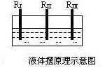 液體擺的結(jié)構(gòu)原理是在玻璃殼體內(nèi)裝有導(dǎo)電液,并有三根鉑電極和外部相連接,三根電極相互平行且間距相等,如圖所示。