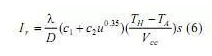 其中:h—熱量傳遞系數(shù)(w/m2×k),s—熱線表面積(m2),TH—熱線溫度(K),TA—氣體溫度(K)。