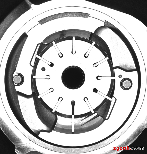 1、相機(jī)配合工業(yè)光源的使用,既能使Mark點(diǎn)特征很好的凸顯,也能讓圓銷和葉片的有無(wú)區(qū)別呈現(xiàn)高的灰度對(duì)比。