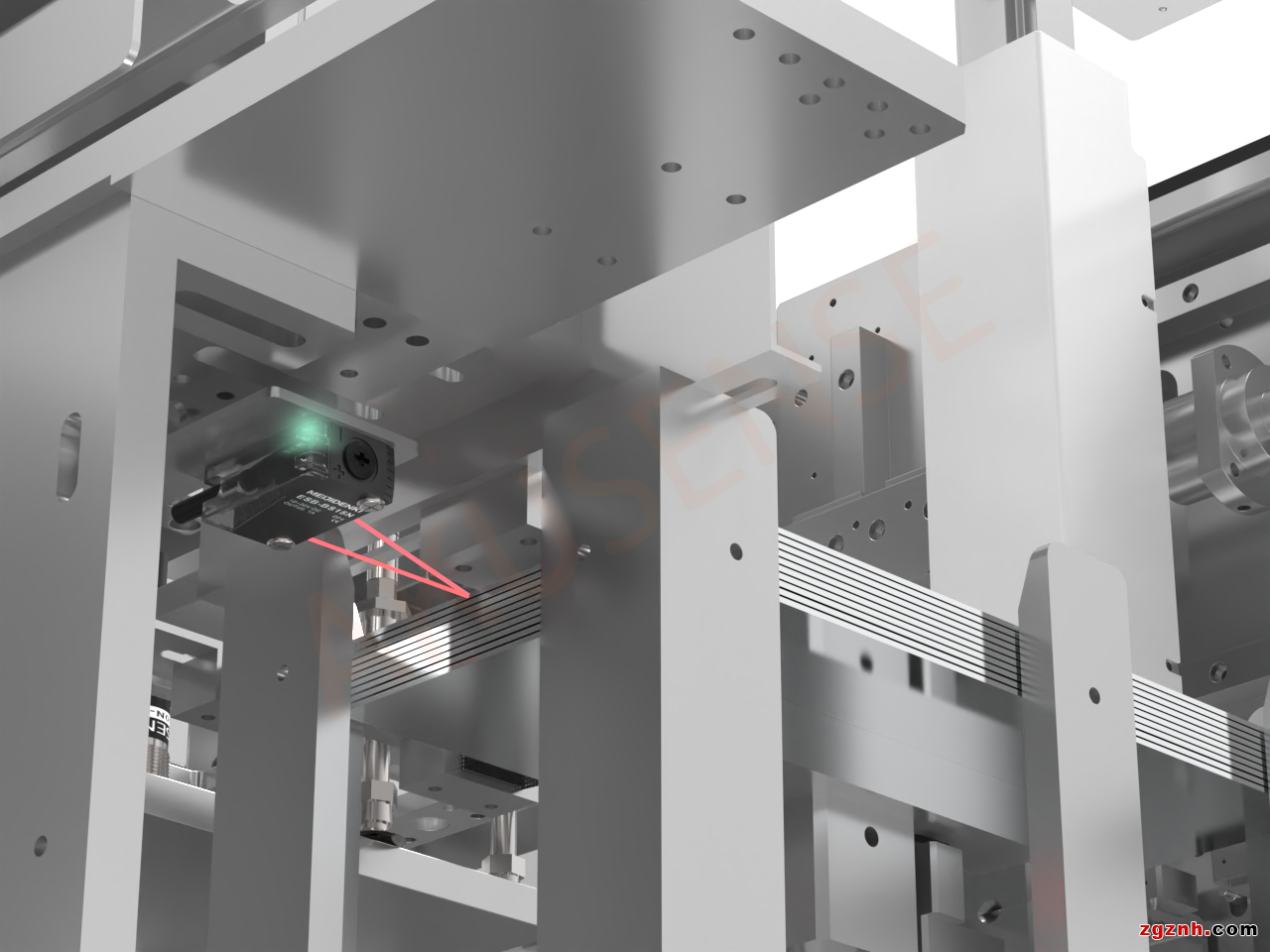 傳感器檢測電池極片位置,感應(yīng)極片到位即觸發(fā)下一步操作,檢測距離在幾毫米到幾十毫米之間。