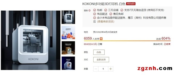乘上國內(nèi)3D技術(shù)市場(chǎng)快速增長(zhǎng)的快車,KOKONI魔芯3D打印機(jī)拔得頭籌,于今年3月上線小米有品,強(qiáng)勢(shì)打開消費(fèi)級(jí)3D打印機(jī)的全新市場(chǎng)。在短短半個(gè)多月的眾籌時(shí)間里,“KOKONI魔芯3D打印機(jī)在小米有品首發(fā)上線,參與人數(shù)達(dá)到3.8萬人,獲得6175人全款支持,眾籌金額超過600萬元,達(dá)到了眾籌目標(biāo)的604%,成為該類目國內(nèi)眾籌第一的品牌?!?