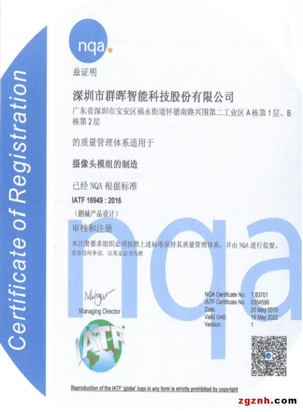 2019獲得IATF16949:2016認(rèn)證車載攝像頭研發(fā)、試產(chǎn)成功
