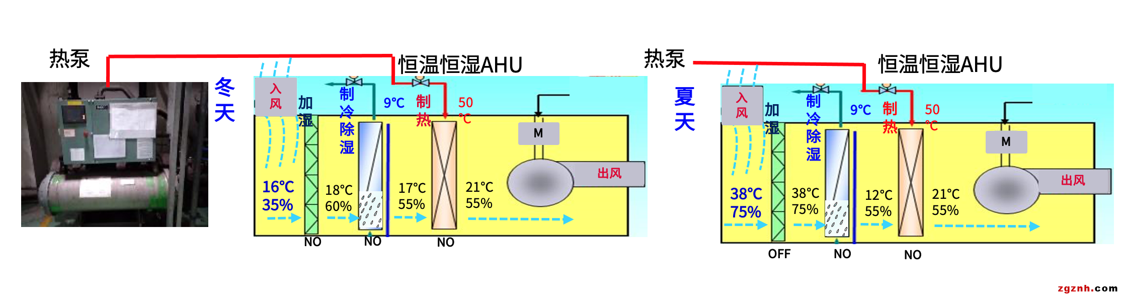 于沉淀中創(chuàng)新,電裝融合自身高水平的技能和技術的產(chǎn)品制造能力,將具有創(chuàng)新性的節(jié)能想法加以實現(xiàn)。過往生產(chǎn)設備間使用的恒溫恒濕空調(diào)(21±1℃、55±5%),為保證溫濕度空調(diào)制熱是需要長時間保持運轉(zhuǎn)的,每年因制熱所消耗電量68萬kWH,而空壓機運行時產(chǎn)生高溫,熱量通過冷卻塔排放大氣中。以2020年為例,熱泵加熱用電68萬KWH/年,電氣等費用51.5萬,發(fā)熱量299萬KW,而空壓機的發(fā)熱量(897萬KW/年)被排放。