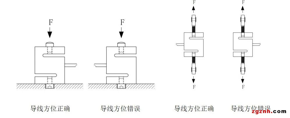 用于壓式時(shí),負(fù)荷加載方向須和安裝支撐面垂直,因?yàn)閭鞲衅髦荒軝z測垂直方向的力,斜向的力會(huì)產(chǎn)生的橫向分力,而橫向分力不能被傳感器檢測到,所以如果加載方向不垂直于支撐面,則會(huì)產(chǎn)生一定的測量誤差。用于拉式時(shí),應(yīng)確保加載力的作用線與傳感器受力軸線重合,避免傳感器受到側(cè)向力或偏置力的作用。