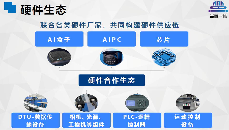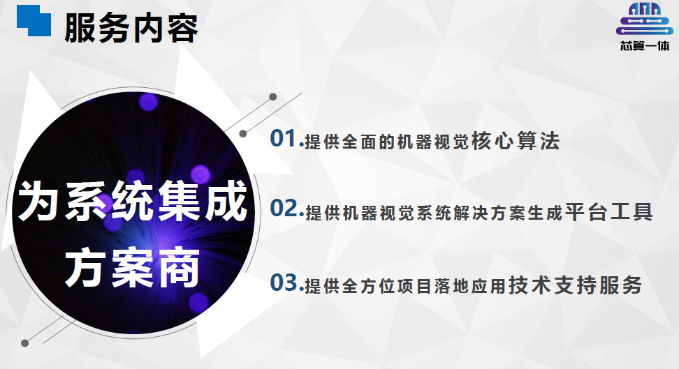 芯算一體基于上述團(tuán)隊(duì)6年以來(lái)的技術(shù)積累,于2022年成立公司,以西安為總部,深圳為研發(fā)和市場(chǎng)總部。專(zhuān)注于機(jī)器視覺(jué)低代碼組態(tài)IDE平臺(tái)建設(shè),聯(lián)合第三方企業(yè)及個(gè)人視覺(jué)算法、組件開(kāi)發(fā)者,攜手各類(lèi)硬件設(shè)備廠家,為系統(tǒng)集成方案商提供全行業(yè)一站式視覺(jué)方案生成平臺(tái),實(shí)現(xiàn)視覺(jué)技術(shù)快速落地應(yīng)用。