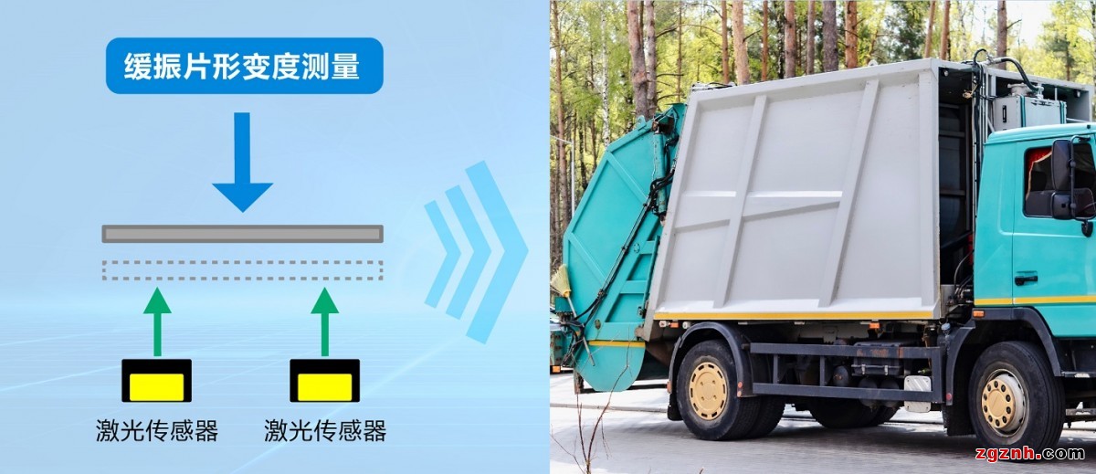 形變度檢測(cè):用于公共環(huán)衛(wèi)車輛上,通過測(cè)量垃圾清運(yùn)車底部緩振片的形變度,實(shí)時(shí)檢測(cè)車體載重情況,讓車輛運(yùn)行更穩(wěn)定。