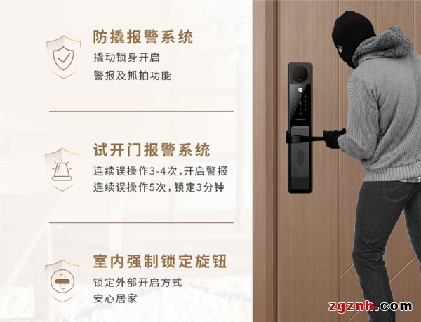 前沿技術(shù)提升了安全性能,而人性化的設(shè)計更為使用者營造更多人文關(guān)懷。電池超長續(xù)航,低電量語音提示;沒電也無需擔(dān)心,支持UBS應(yīng)急電源接口;夜晚睡前還可設(shè)置室內(nèi)強(qiáng)制鎖定旋鈕,鎖定外部解鎖等多重人性化細(xì)節(jié),讓家人盡享生活的安心與便捷。