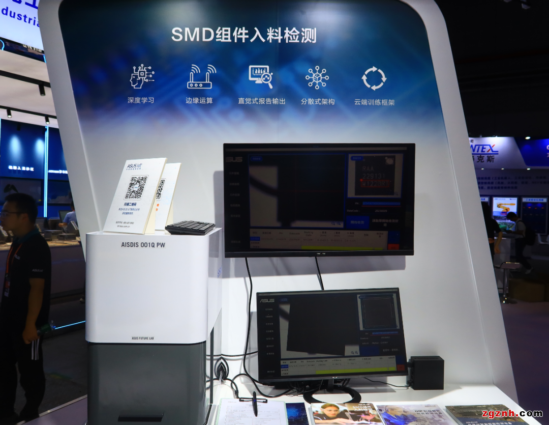 華碩SMD組件入料檢測設(shè)備以人工智能、字符辨識(OCR)和鐳射量測同步協(xié)作,作為自動光學(xué)檢測的運作核心,協(xié)助電子組裝服務(wù)廠針對SMD表面安裝的組件到廠入庫前的尺寸、外表印字或料卷標簽標示等,借由設(shè)備對相關(guān)零件的文字辨識讀取與測量,確認入庫組件與采購規(guī)格相符,在生產(chǎn)最源頭的原料入廠階段就進行把關(guān),設(shè)備預(yù)大量人工智能與字符辨識模型,品保單位可直接使用,無需重新建置辨識模型。
