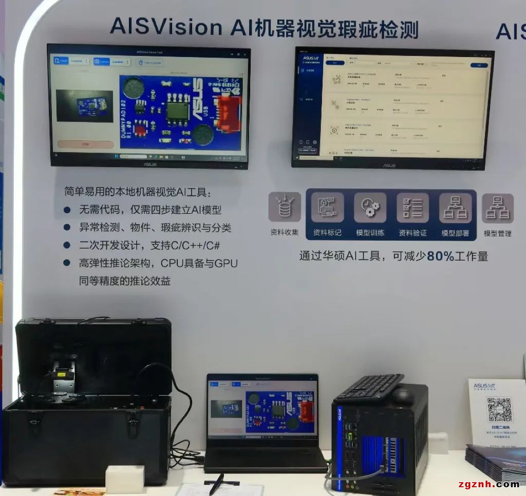 華碩AISVision采用華碩AI機器視覺應(yīng)用技術(shù),提供三種作業(yè)模式,包括訓(xùn)練、推論和排程。此工具包簡化了AI知識的復(fù)雜度,可讓開發(fā)人員采用華碩專有技術(shù),在無代碼的開發(fā)環(huán)境下,僅需數(shù)分鐘建立自己的AI模型。包含異常檢測、圖像分割,對象偵測與影像分類。開發(fā)人員還可以使用此工具包,輸入新資料重新進行訓(xùn)練模型,并保存其領(lǐng)域的專業(yè)知識。