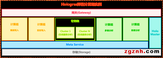 Hologres彈性計(jì)算組(warehouse)采用Shared Data 架構(gòu),存儲(chǔ)共用一份,計(jì)算資源分解為不同的計(jì)算組(Warehouse),每個(gè)計(jì)算組可獨(dú)立彈性擴(kuò)展,計(jì)算組之間共享數(shù)據(jù)、元數(shù)據(jù)。