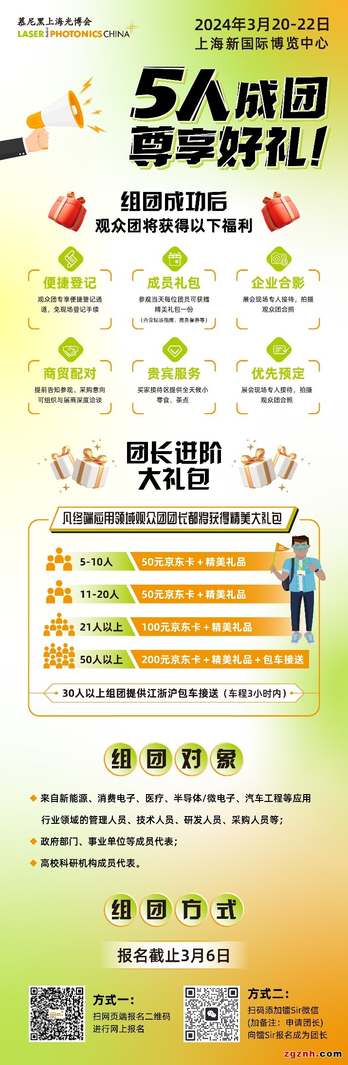 鐳Sir在此邀請光電領(lǐng)域及各大應(yīng)用領(lǐng)域?qū)I(yè)人士組團前來參觀,5人即可成團,還能尊享便捷登記、專人對接、免費餐券、企業(yè)禮包、團隊合影、商貿(mào)配對等優(yōu)質(zhì)服務(wù),全面提升觀眾體驗感及滿足參觀需求!