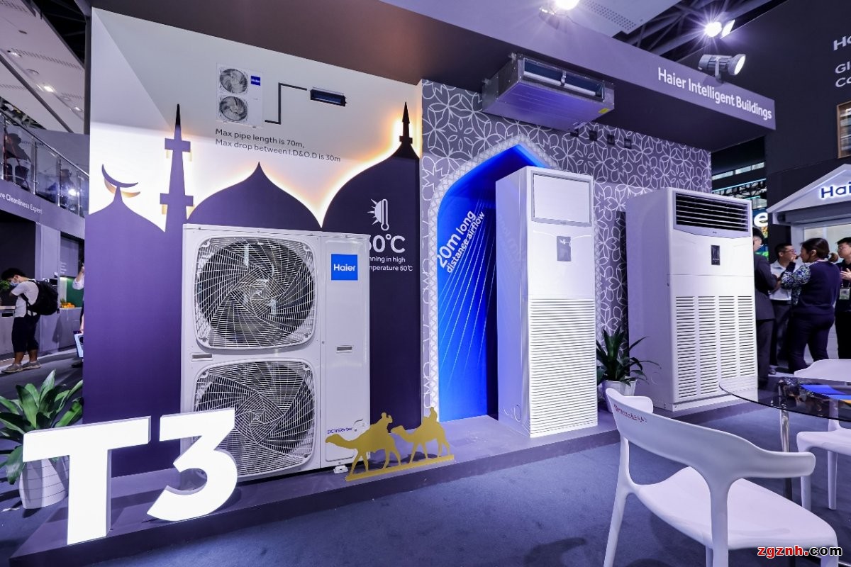 工作人員介紹到,T3 Super Airflow柜機(jī)是中東非地區(qū)的明星產(chǎn)品。中東非地區(qū)氣候炎熱干燥,普通機(jī)組難啟動且易故障,機(jī)組的穩(wěn)定性成為研發(fā)重點(diǎn)。海爾智慧樓宇推出的該系列方案,實(shí)現(xiàn)了高溫環(huán)境下穩(wěn)定制冷不停機(jī),為用戶送來清涼舒適。同時,機(jī)組送風(fēng)距離提升33%,實(shí)現(xiàn)20米超遠(yuǎn)送風(fēng),風(fēng)量提升29.4%,行業(yè)領(lǐng)先。采用的全直流變頻壓縮機(jī)和直流風(fēng)機(jī),高效節(jié)能。此外還有Wi-Fi模塊,實(shí)現(xiàn)了遠(yuǎn)程控制、在線管理。