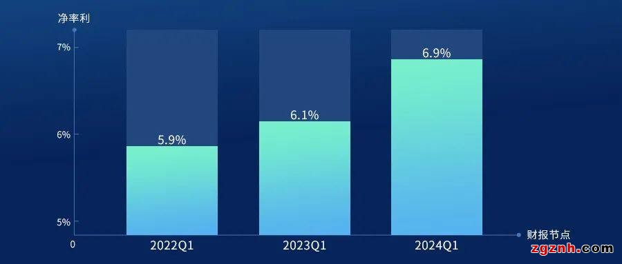 橫向來(lái)看,過(guò)去三年一季報(bào),海爾智家的凈利率從2022Q1的5.9%提升到2023Q1的6.1%,再到2024Q1的6.9%。