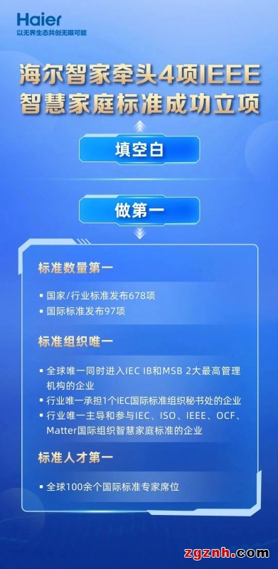 縱觀全球智慧家庭領(lǐng)域,競爭日趨激烈,海爾智家為何會成為標(biāo)準(zhǔn)的發(fā)起者和主導(dǎo)者?離不開其“行業(yè)第一”的標(biāo)準(zhǔn)實(shí)力做支撐。目前,海爾智家在標(biāo)準(zhǔn)數(shù)量、標(biāo)準(zhǔn)組織、標(biāo)準(zhǔn)人才領(lǐng)域全面領(lǐng)跑,牢牢掌握行業(yè)話語權(quán)。