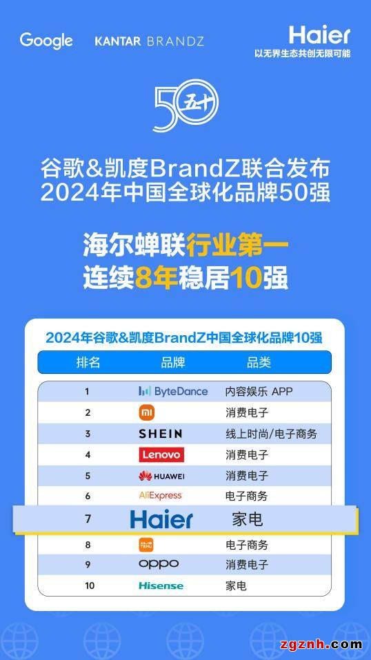 2024中國全球化品牌50強揭榜!海爾蟬聯(lián)行業(yè)第一,穩(wěn)居十強