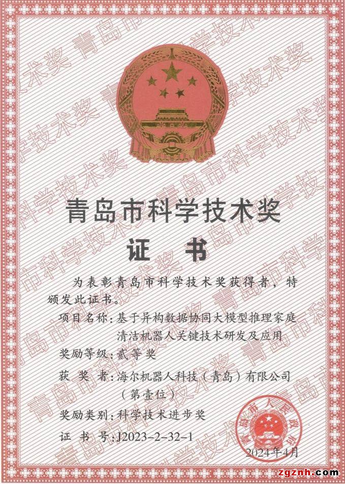 近期,青島市政府印發(fā)《關于2023年度青島市科學技術獎勵的決定》,對獲得2023年度市科學技術獎的項目和人員進行表彰獎勵。其中,由海爾機器人牽頭完成的“基于異構數據協同大模型推理家庭清潔機器人關鍵技術研發(fā)及應用”項目獲青島市科學技術進步獎二等獎。這不僅代表著海爾機器人立足用戶需求的前沿科技創(chuàng)新得到了權威認可,也再次彰顯了其在機器人及人工智能領域的持續(xù)引領。