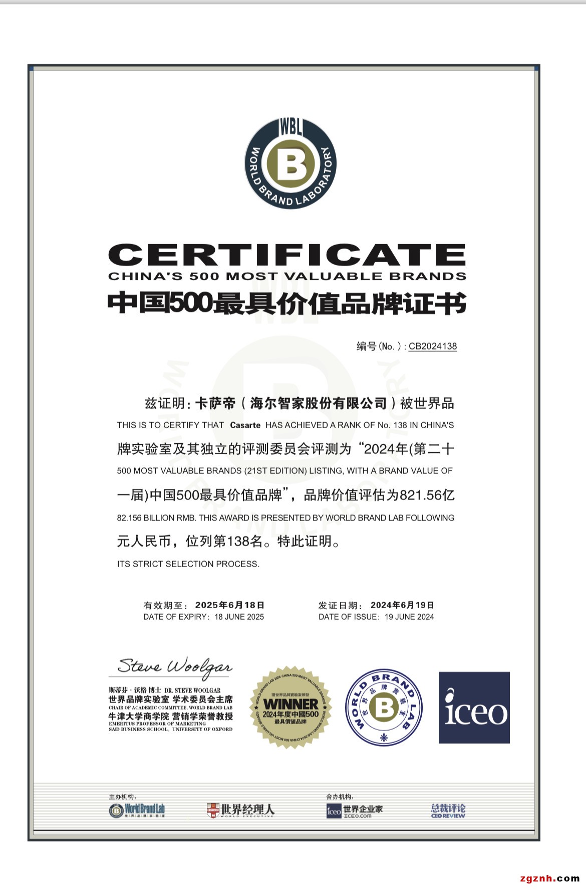 近日,卡薩帝第4次榮登世界品牌實(shí)驗(yàn)室(World Brand Lab)發(fā)布的《中國(guó)500最具價(jià)值品牌》榜單,以821.56億品牌價(jià)值成為高端家電唯一入選品牌。