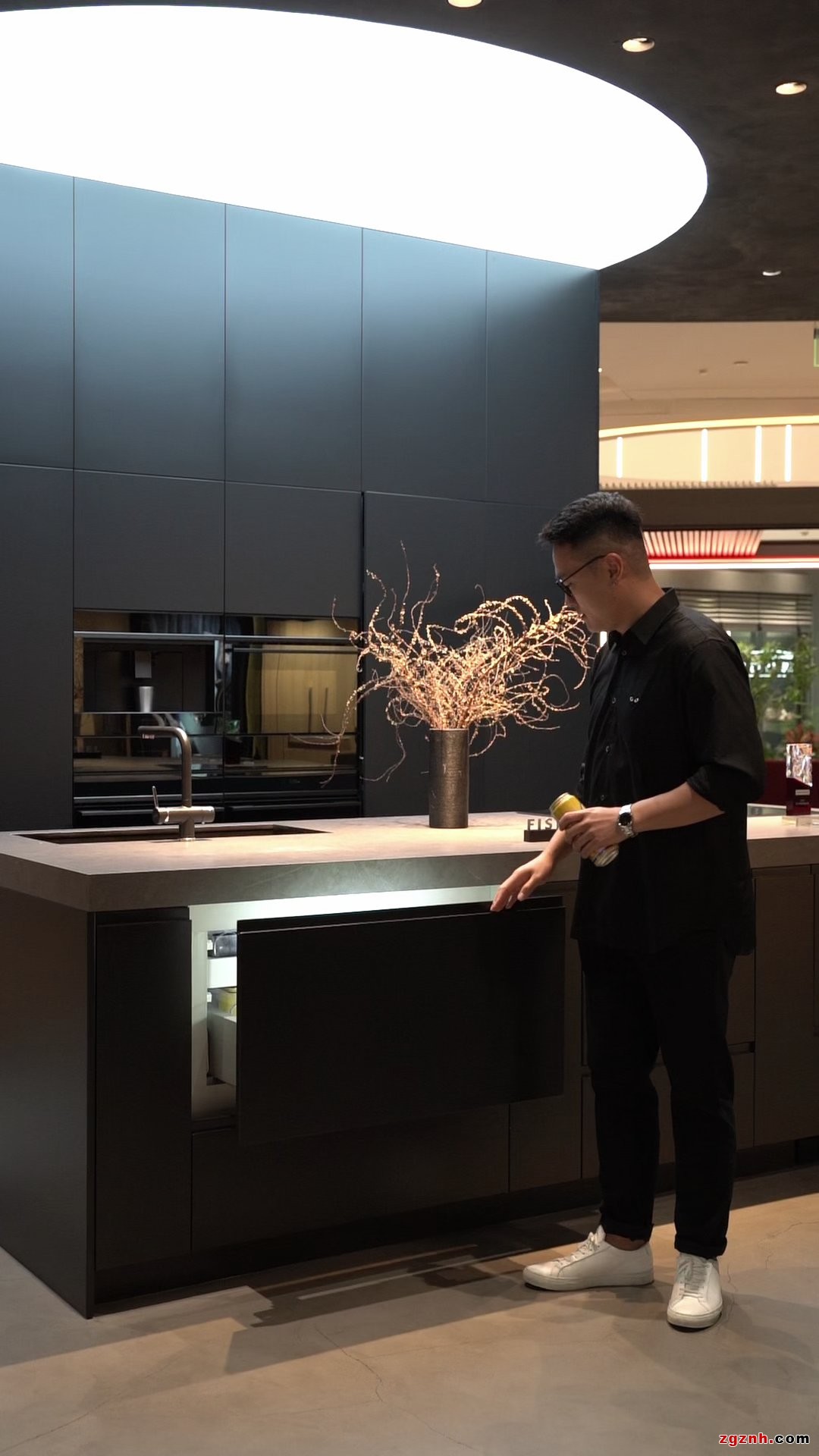 在這樣的廚房里,用戶可以一邊與朋友談笑風(fēng)生,一邊一起制作清爽沙拉。順手拉開臺面下的抽屜式冰箱,將剛做好的甜點放進去冷藏,再取出一支臻藏的紅酒,與朋友分享美味與喜悅。整個過程流暢自然,無需離開島臺就讓社交與烹飪相互融合,營造出優(yōu)雅而愜意的社交氛圍。