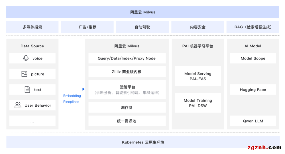 現(xiàn)在,阿里云向量檢索服務(wù)Milvus版為非結(jié)構(gòu)化數(shù)據(jù)處理提供全鏈路解決方案,在整個鏈路中,從向量索引、工程算法優(yōu)化、彈性擴縮容、全鏈路非結(jié)構(gòu)化Pinepline等多個方向進行大量優(yōu)化,目前已經(jīng)成功應(yīng)用于相似性檢索、多模態(tài)檢索,大語言模型中的檢索增強生成等場景中。