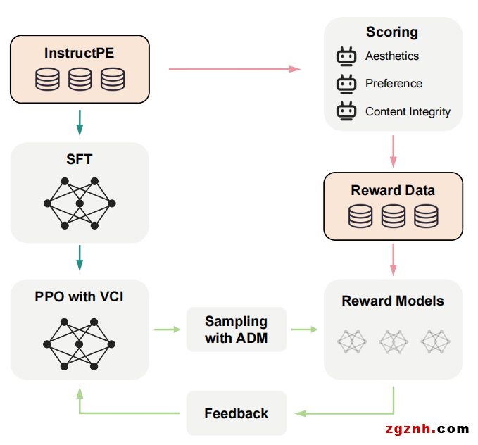 該方法首先通過(guò)提示詞美化和提示詞工程的方法建立了一個(gè)和該任務(wù)高度相關(guān)的數(shù)據(jù)集。 然后,在執(zhí)行有監(jiān)督微調(diào)訓(xùn)練后,為了進(jìn)一步提升模型性能,該方法提出了一種帶有美學(xué)、人類偏好和內(nèi)容完整度反饋的強(qiáng)化學(xué)習(xí)技術(shù)來(lái)進(jìn)一步優(yōu)化模型。同時(shí),該方法還提出了動(dòng)作空間動(dòng)態(tài)修正和基于內(nèi)容完整度的狀態(tài)價(jià)值估計(jì)兩項(xiàng)技術(shù)進(jìn)行額外改進(jìn)。實(shí)驗(yàn)結(jié)果表明,該方法顯著優(yōu)于一些具有競(jìng)爭(zhēng)力的同類方法。
