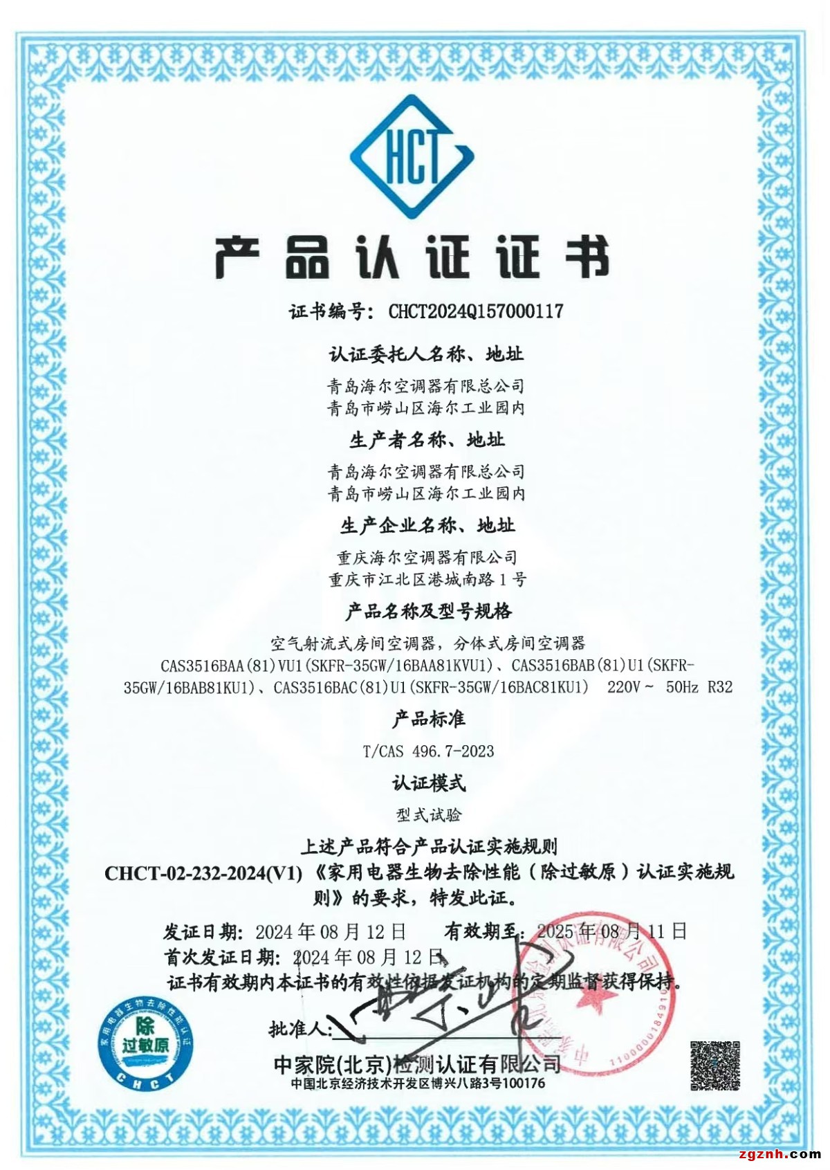 8月15日,由中國(guó)家用電器研究院指導(dǎo),全國(guó)家用電器工業(yè)信息中心和中家院(北京)檢測(cè)認(rèn)證有限公司主辦的“2024年空調(diào)行業(yè)發(fā)展大會(huì)”在江西省九江市順利召開。會(huì)上,卡薩帝星云空調(diào)、致境空調(diào)獲得首批除過(guò)敏原認(rèn)證,成為專業(yè)認(rèn)可的除過(guò)敏原產(chǎn)品。卡薩帝空調(diào)搭載水氧洗空氣科技,能快速釋放極細(xì)水分子,讓空氣更清新舒適,同時(shí)雙極離子除菌科技可實(shí)現(xiàn) 99.9% 的空氣除菌率,為過(guò)敏人群打造更健康、舒適的呼吸環(huán)境。