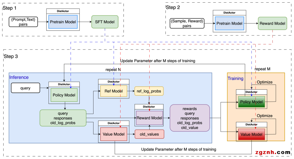 ChatGPT是OpenAI開發(fā)的基于大型語言模型(LLM)的聊天機(jī)器人,以其令人驚嘆的對(duì)話能力而迅速火爆并被廣泛采用。ChatGPT 成功背后得益于大型語言模型生成領(lǐng)域的新訓(xùn)練范式:RLHF (Reinforcement Learning from Human Feedback),即以強(qiáng)化學(xué)習(xí)方式依據(jù)人類反饋優(yōu)化語言模型。不同于傳統(tǒng)的深度學(xué)習(xí)訓(xùn)練,只涉及到單個(gè)模型的迭代和優(yōu)化,以 RLHF 為代表的Alignment訓(xùn)練范式涉及到多個(gè)大模型的計(jì)算和數(shù)據(jù)交互,這對(duì)于構(gòu)建構(gòu)建一個(gè)易用、高效、可擴(kuò)展的訓(xùn)練系統(tǒng)提出了諸多的挑戰(zhàn)。
