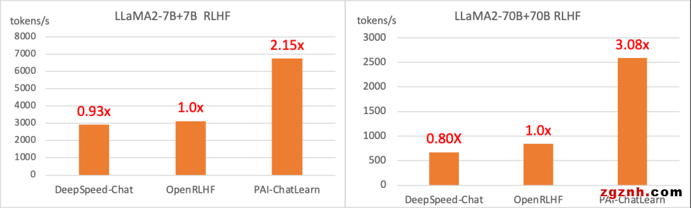 高性能: 相較于當(dāng)前的 SOTA 系統(tǒng),ChatLearn 在 7B+7B (Policy+Reward) 規(guī)模性能提升115%,70B+70B 規(guī)模性能提升 208%。同時(shí),ChatLearn 支持更大規(guī)模的 Alignment 訓(xùn)練,例如:300B+300B。