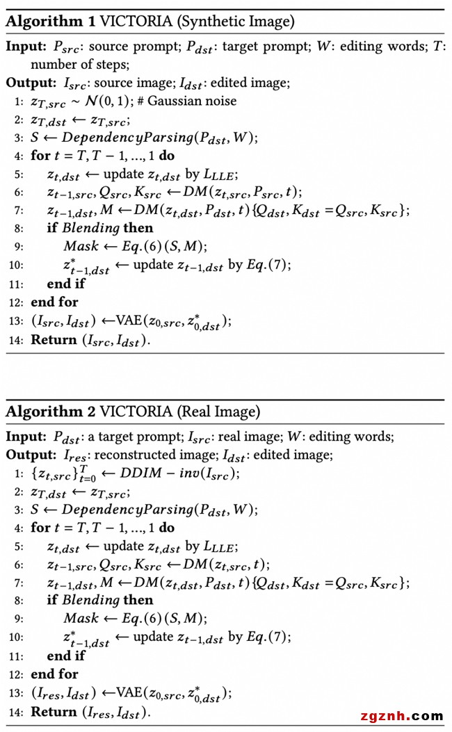 圖 3:VICTORIA 在合成圖像編輯和真實(shí)圖像編輯場景下的偽代碼