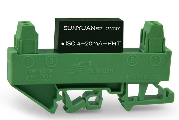 本次研制的HART透傳型4-20mA兩線無源隔離配電器,是一款專門針對具有HART協(xié)議傳輸及控制的工業(yè)儀器儀表智能傳感器模塊。工作原理是通過后級饋電方式,給前級兩線制智能設(shè)備供電,同時(shí)接收來自智能設(shè)備輸出的兩線制4~ 20mA 電流信號(hào),通過隔離濾波后輸出4~20mA標(biāo)準(zhǔn)信號(hào)。模塊內(nèi)部集成了HART數(shù)字信號(hào)隔離傳輸電路和模擬量4-20mA電流環(huán)路隔離配送電路,HART信號(hào)雙向傳輸能支持現(xiàn)場智能傳感器及儀表設(shè)備與控制室DCS集散系統(tǒng)之間的通訊,充分發(fā)揮數(shù)字與模擬信號(hào)的雙重優(yōu)勢。這種帶HART透傳功能的信號(hào)隔離配電器是一種高性能的信號(hào)處理設(shè)備,它結(jié)合了信號(hào)隔離配電與HART通訊技術(shù)的優(yōu)勢,能夠?qū)崿F(xiàn)對工業(yè)現(xiàn)場兩線制傳感器、變送器、儀器儀表等隔離配電以及對信號(hào)的可靠傳輸與精確測量控制。ISO 4-20mA-FHT模塊主要用于工業(yè)現(xiàn)場智能傳感器4-20mA信號(hào)的隔離配電及HART信號(hào)透傳,工作中可為前端的兩線制設(shè)備配電16V~21VDC,方便了一些兩線制傳感器的信號(hào)測量及遠(yuǎn)傳功能。模塊輸出端是針對24VDC和取樣電阻(負(fù)載電阻)相串聯(lián)的二線制供電回路(現(xiàn)場防爆功能)來設(shè)計(jì)的,與工業(yè)現(xiàn)場當(dāng)前常用的模擬量輸入接口板(上位機(jī))、PLC、DCS或其他儀器儀表設(shè)備的模擬量輸入端口相匹配, 內(nèi)部的集成工藝及新技術(shù)隔離措施使該模塊能達(dá)到3KVDC絕緣電壓和工業(yè)級寬溫度、潮濕、震動(dòng)的現(xiàn)場惡劣環(huán)境要求,在智能變送器、工控智能化、采礦及醫(yī)療設(shè)備安全隔離柵、工業(yè)機(jī)器人、化工及核電安全裝備領(lǐng)域有著廣泛應(yīng)用。