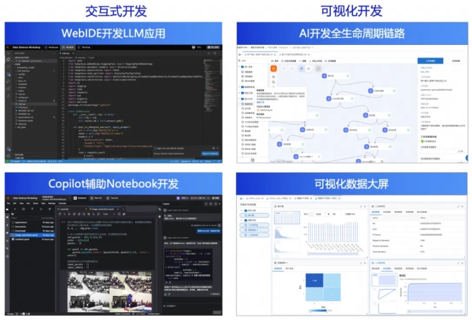 PAI-DSW(Data Science Workshop)是為算法開(kāi)發(fā)者量身打造的交互式云端開(kāi)發(fā) IDE,支持 Copilot 輔助編程,提供豐富的異構(gòu)計(jì)算資源,預(yù)置多種開(kāi)源框架的鏡像,支持實(shí)例的生命周期管理。提供海量前沿案例,以 Notebook 的形式提供熱門(mén)場(chǎng)景的最佳實(shí)踐,如 Stable Diffusion、Llama2、通義千問(wèn)系列大模型等。