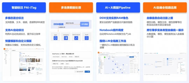 5. AI 與大數(shù)據(jù)一體化:智能標(biāo)注 PAI-iTag、多種場(chǎng)景數(shù)據(jù)處理、AI 血緣全鏈路追溯等