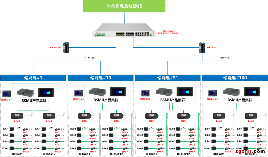 為應(yīng)對這些挑戰(zhàn),三旺通信推出了一套安全可靠的BMS系統(tǒng)解決方案。該方案基于三級架構(gòu)設(shè)計——基礎(chǔ)BMS(包括從控BMU、主控BCMU以及總控BSMU),采用CAN和以太網(wǎng)的通訊方式實現(xiàn)高效的數(shù)據(jù)交換。具體方案: