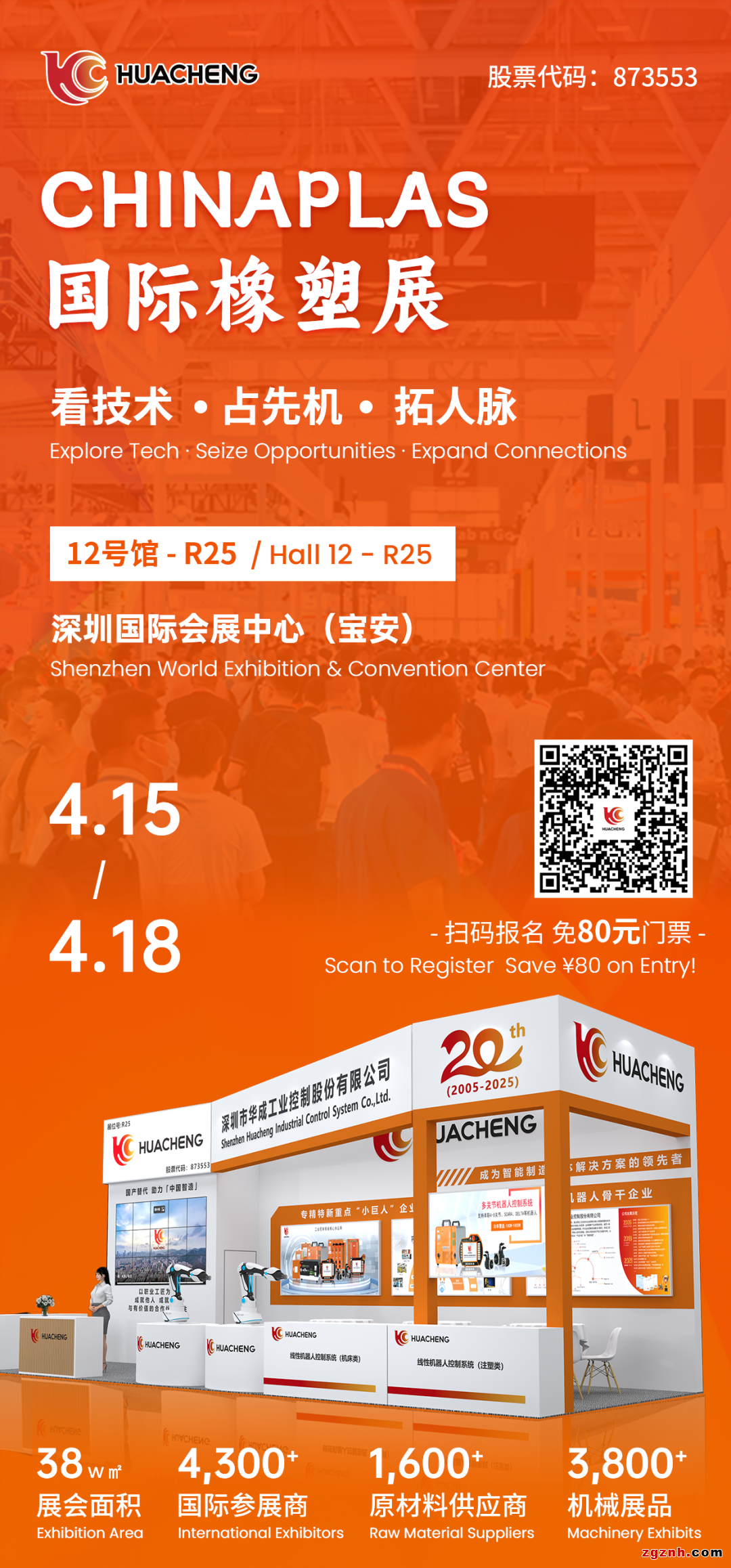 CHINAPLAS 2025 國際橡塑展是您看技術、占先機、拓人脈的機會。歡迎蒞臨12號館12R25 華成工控展臺,與我們一同探索智能制造的無限可能!