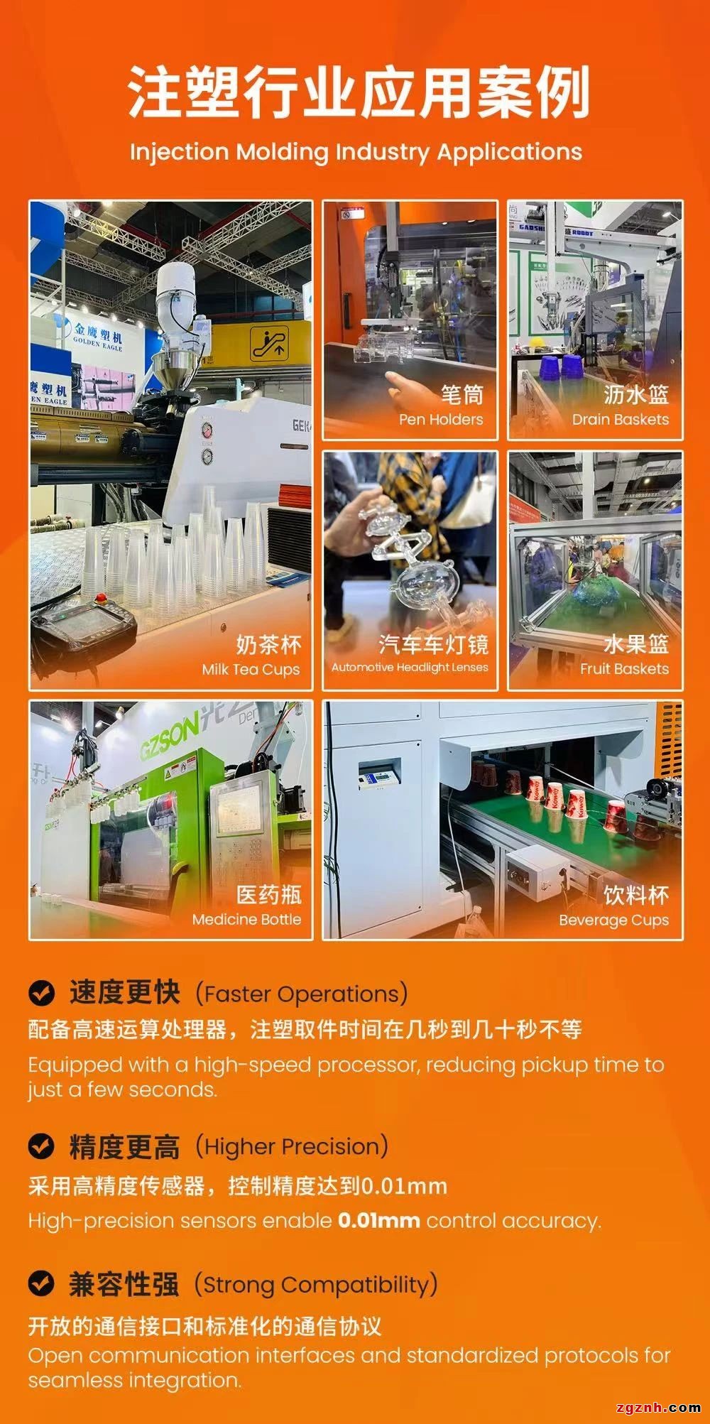 At the exhibition site, Huacheng Industrial Control will present a variety of injection control system products. The "Motion Control System of High Performance Multi-axis Injection Manipulator" independently developed by Huacheng Industrial Control Co., Ltd. only takes an average of 0.395 seconds in the mechanical hand mold, and the Control accuracy reaches 0.01 mm within a movement stroke of 3 meters. The whole process is stable and efficient! Huacheng industrial control injection molding linear robot control system has penetrated into the production of all walks of life by virtue of its advantages in technical design, safety guarantee and cost control.