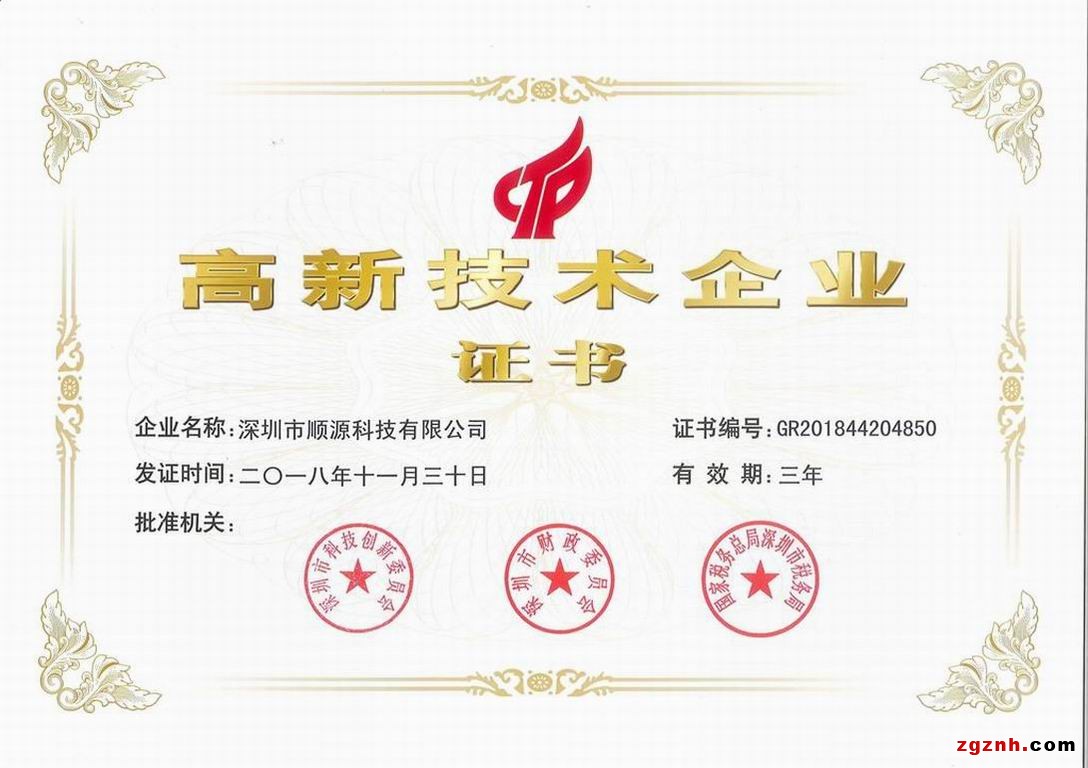順源科技?xì)v屆高新技術(shù)企業(yè)證書展示