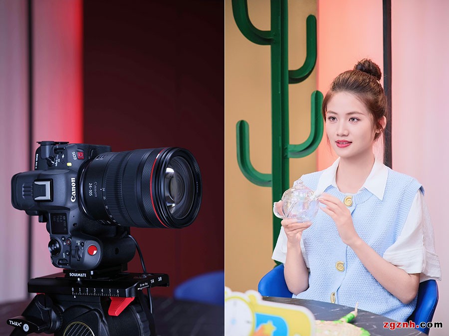 直播過(guò)程中佳能EOS R5 C特寫機(jī)位緊緊鎖定主播的眼睛