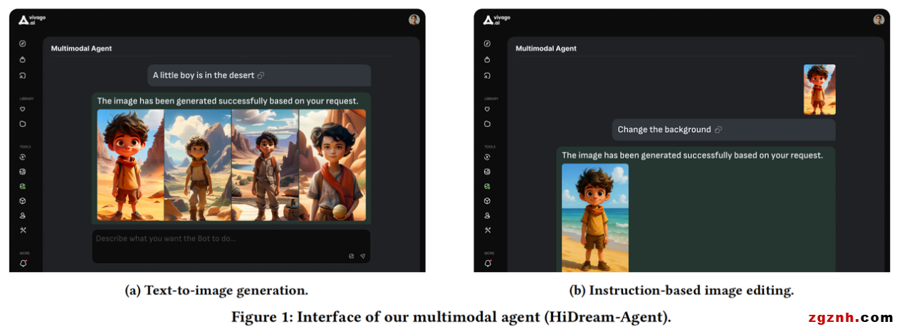 該智能體開創(chuàng)了可及性、交互式視覺敘事和多模態(tài)生成AI中協(xié)作內(nèi)容創(chuàng)作的新方式,通過將生成和編輯融合于一個對話驅(qū)動的體驗(yàn)中,降低了高質(zhì)量視覺內(nèi)容創(chuàng)作的門檻,并顯著縮短了迭代周期,實(shí)現(xiàn)從想法到優(yōu)質(zhì)產(chǎn)出的 “一次會話” 創(chuàng)意循環(huán)。目前,這一技術(shù)原型已成功迭代應(yīng)用于智象未來旗艦產(chǎn)品vivago.ai的對話生成功能中,為用戶提供更自然、個性化的多模態(tài)對話交互體驗(yàn)。