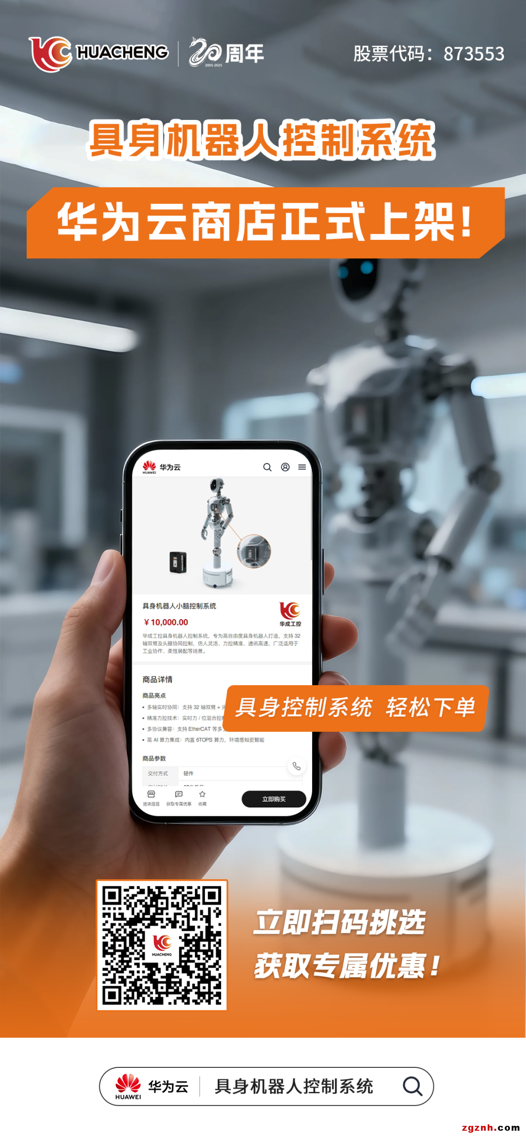 用戶可直接訪問華為云商店官網(wǎng),通過搜索關(guān)鍵詞"具身機(jī)器人控制系統(tǒng)"或"華成工控",即可快速了解產(chǎn)品詳情,頁面涵蓋產(chǎn)品介紹、核心參數(shù)、技術(shù)手冊及在線咨詢?nèi)肟诘热S度信息。
