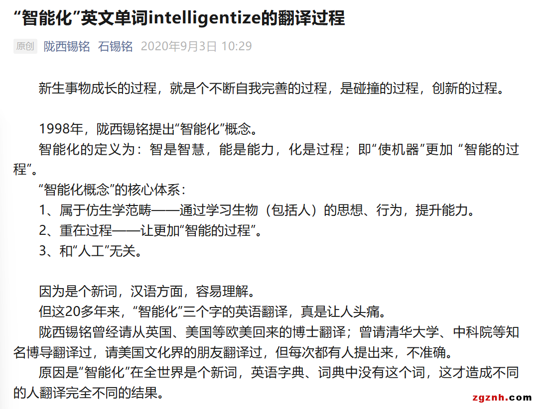 這就是自1998年石錫銘先生提出來(lái),直到2020年,一直沒(méi)有一個(gè)英文單詞準(zhǔn)確翻譯“智能化”的原因。
