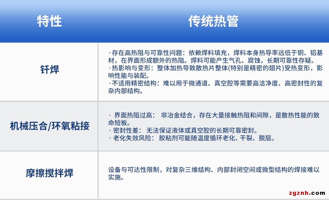傳統(tǒng)散熱片制造技術(shù)主要采用:釬焊、機械壓合/環(huán)氧粘接及攪拌摩擦焊接等連接技術(shù),傳統(tǒng)方法在界面熱阻、結(jié)構(gòu)精度、密封可靠性和復(fù)雜幾何形狀適應(yīng)性上無法滿足新一代散熱器的需求,激光焊接工藝以其獨特優(yōu)勢逐漸成為散熱片連接主流技術(shù)。