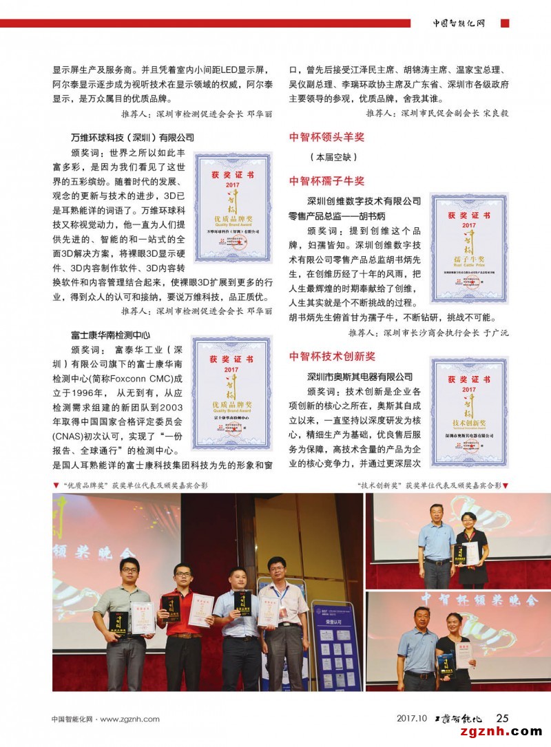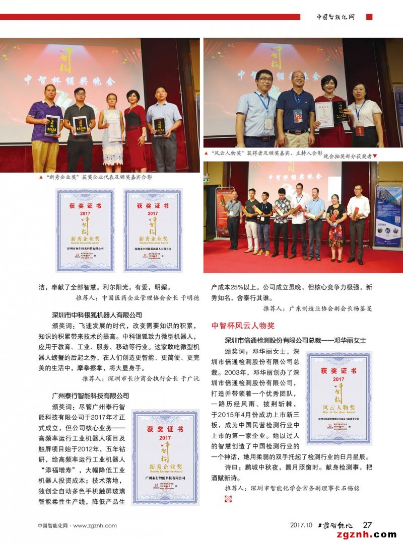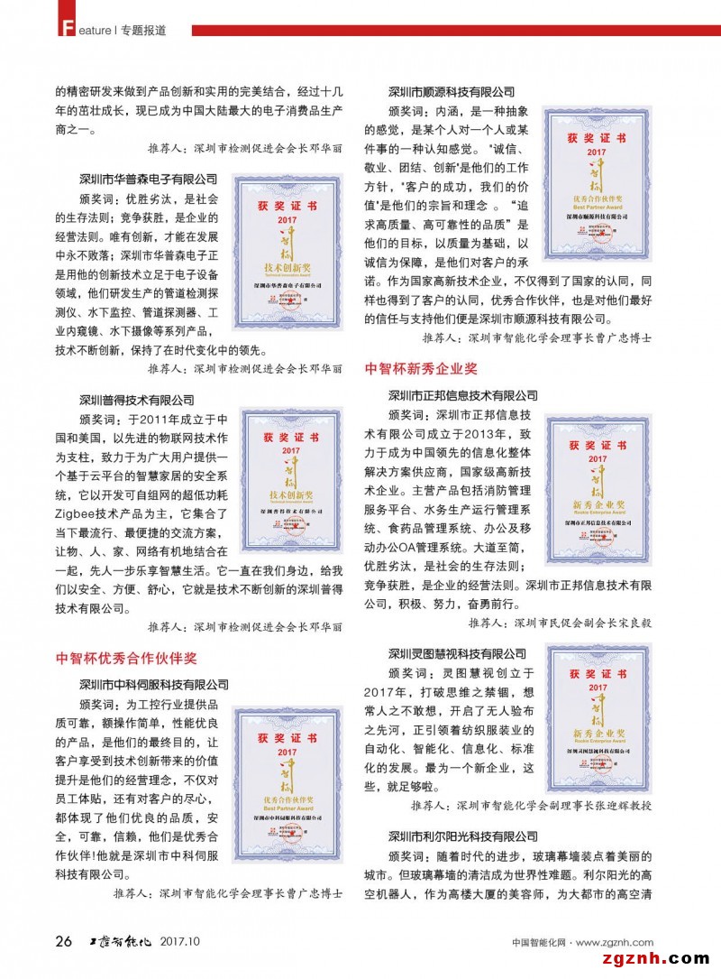 2017年9月15日,在由深圳市科協(xié)主辦,深圳市智能化學(xué)會承辦的第十九屆智能化技術(shù)應(yīng)用創(chuàng)新高峰論壇——智能感知的會議上,中國智能化網(wǎng)(m.zgmsyjy.com)舉行了首屆”中智杯“的頒獎晚會。